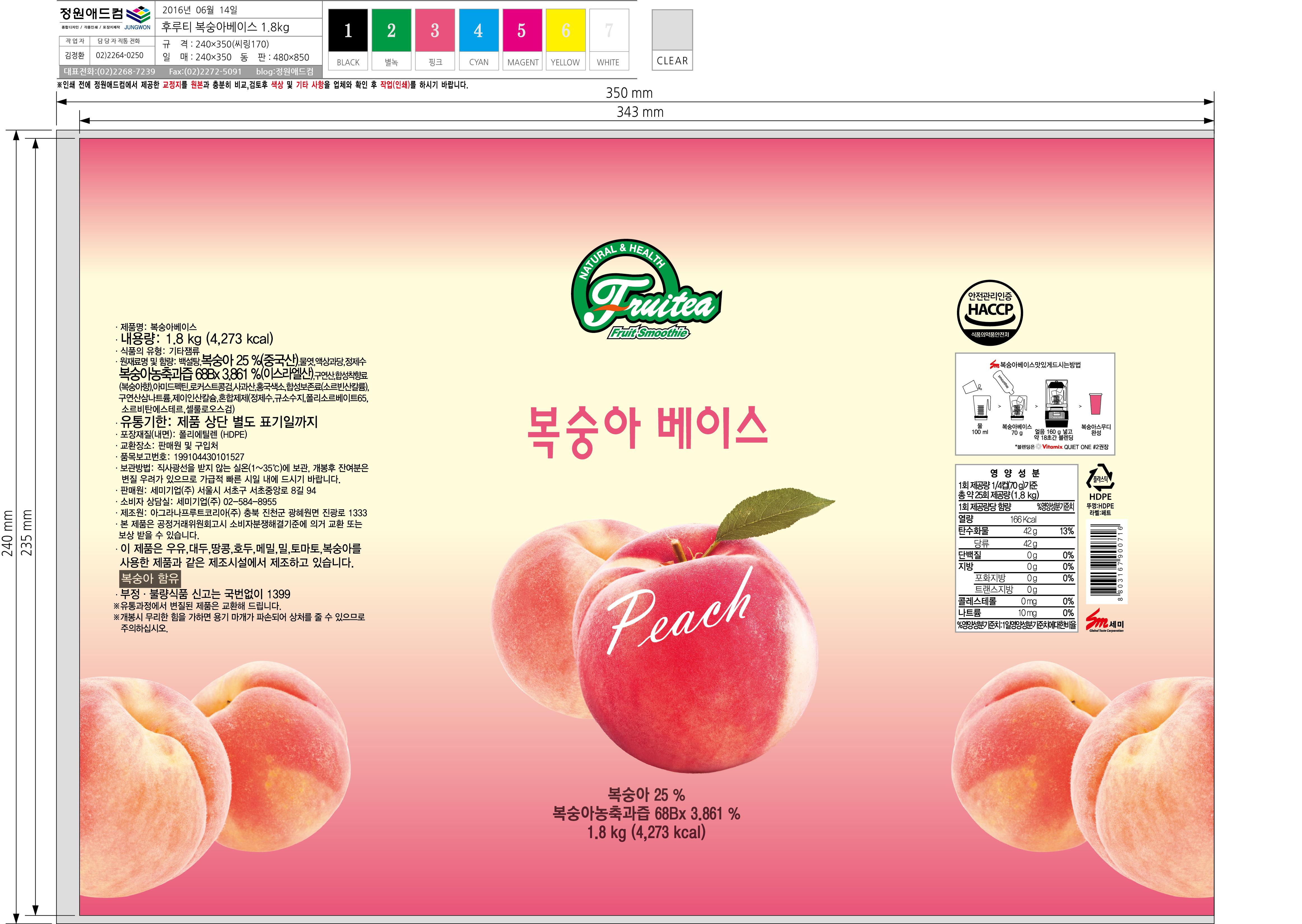 (세미)후루티백도스무디(복숭아베이스)_1.8㎏*6ea/box