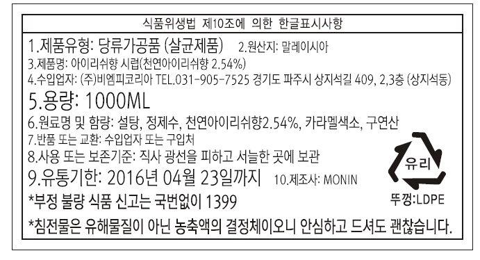 라떼, 모카, 스무디 및 청량음료에 맛을 더합니다.