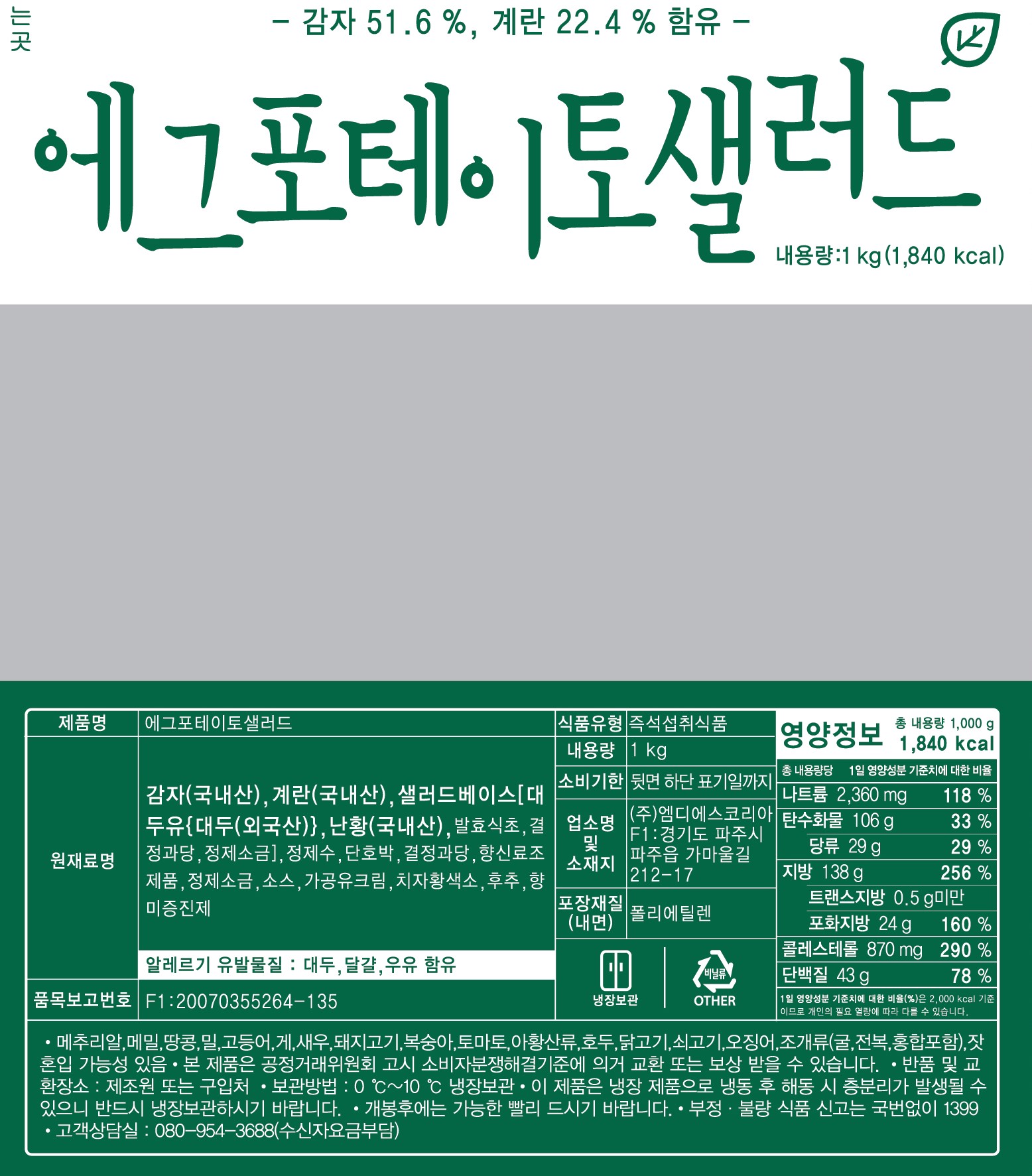 (엠디에스)에그포테이토샐러드_1kg*10ea/box
