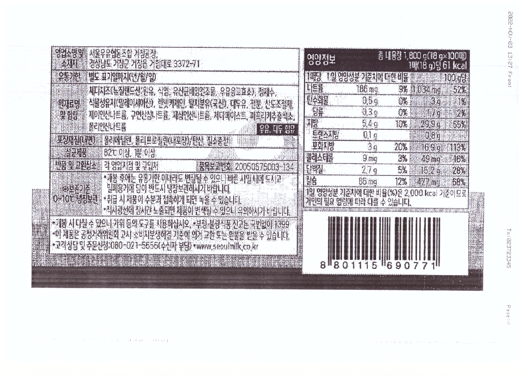 서울우유체다슬라이스치즈멀티2_1.8kg*4ea/BOX