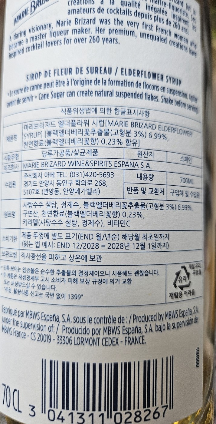 (마리브리자드)엘더플라워시럽_700ml*6ea/box