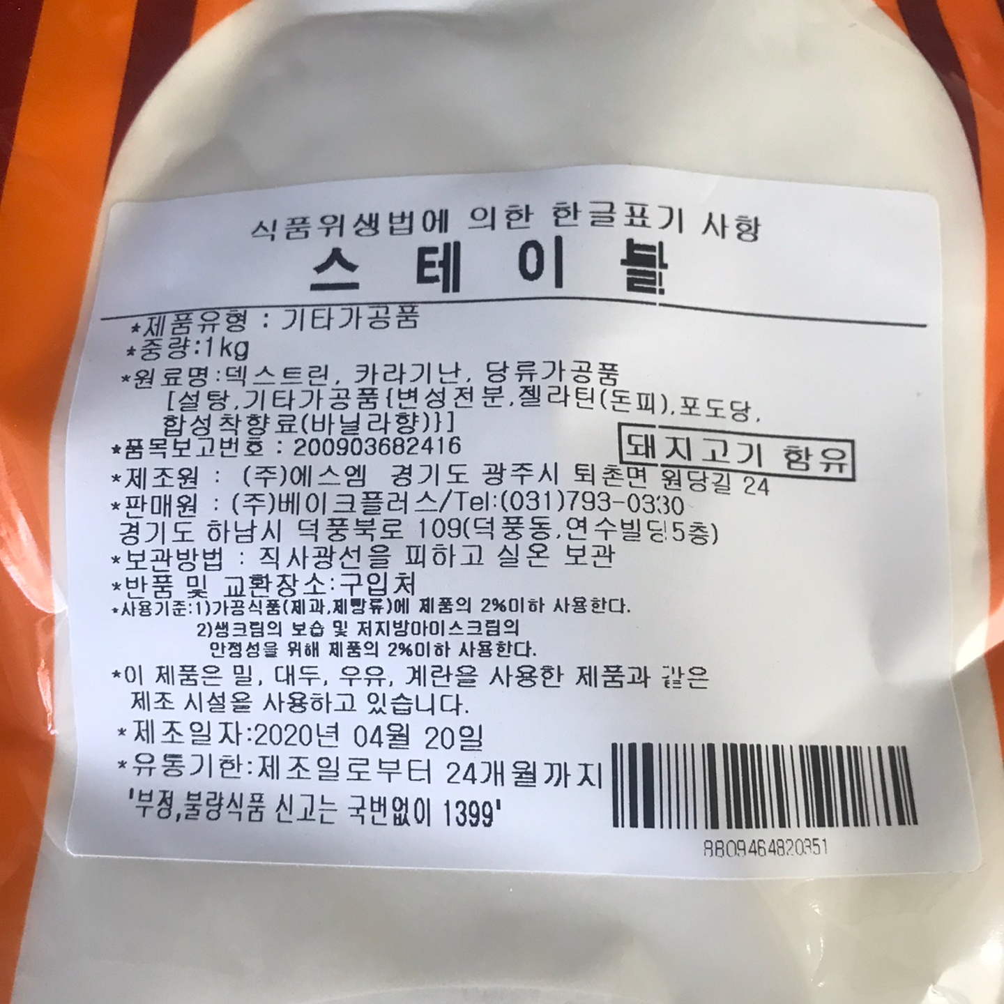 보습성 강한 생크림, 휘핑크림 안정제 제품입니다.