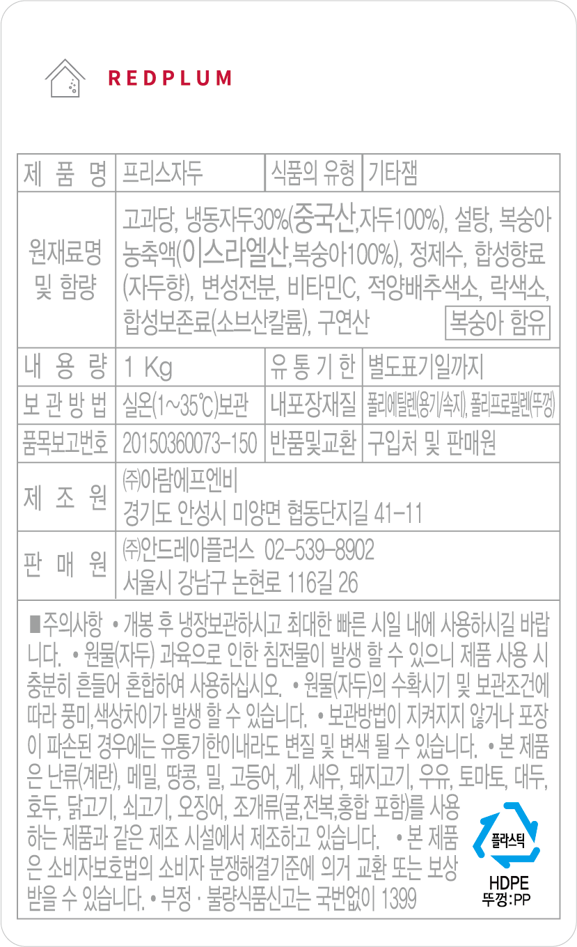 달콤하고 새콤한 레드플럼으로 만든 자두베이스입니다.