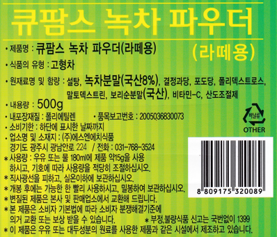 좋은 품질의 분말 녹차를 사용하여 구수한 녹차맛에 너무 달지 않은 제품입니다.