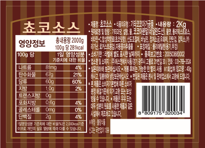 큐팜스_초코소스_2kg*6ea/box