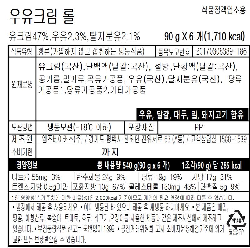 소화가 잘되는 우유로 만든 신선한 우유크림의 롤케이크
