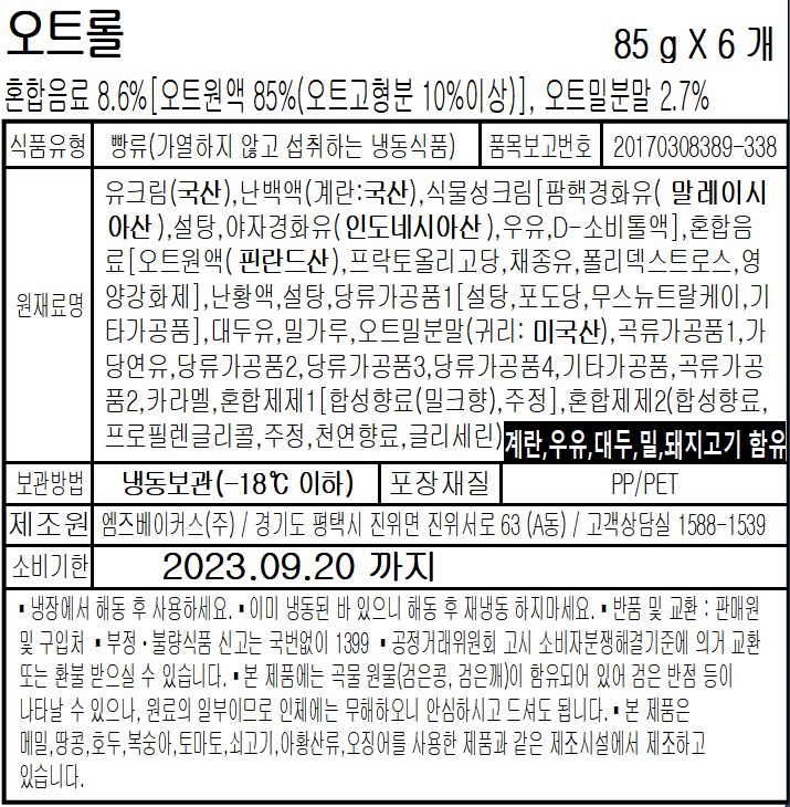 S(베이커스)오트롤(조각)_85g*6ea/box