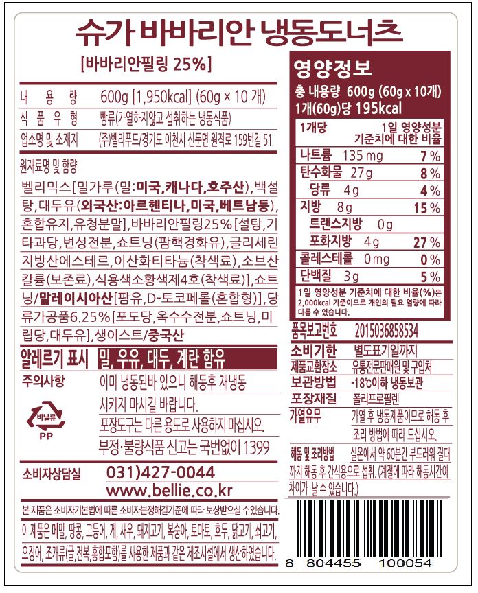 슈가바바리안_냉동도너츠_60g*10ea*5pk/BOX