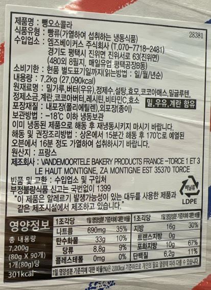 S(베이커스)뺑오쇼콜라(반데모르텔)_80g*90ea/box