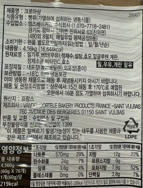 S(베이커스)크로아상(반데모르텔)_60g*76ea/box