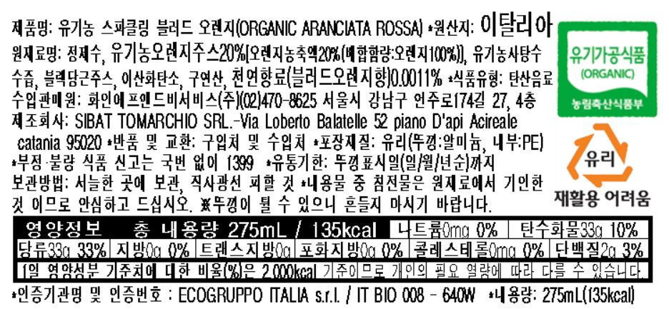 토마치오_유기농 스파클링 오렌지_275ml*24ea/box
