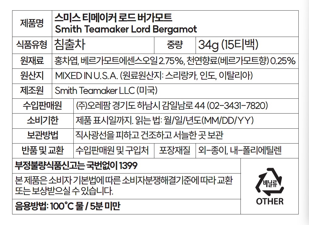스미스티메이커_로드 버가모트_15tb*6ea/box
