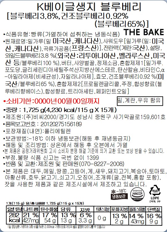 새콤달콤한 블루베리가 함유되어 있는 베이글을 구울 수 있는 냉동 생지