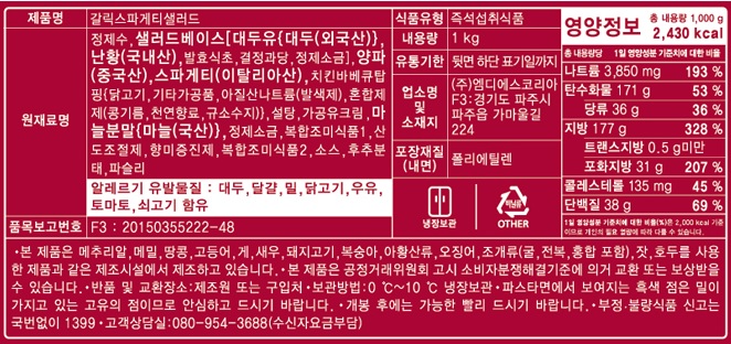 (엠디에스)갈릭스파게티샐러드_1kg*10ea/box