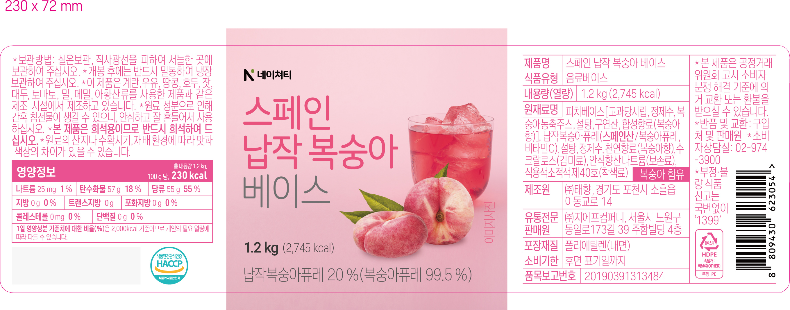 (네이쳐티)납작복숭아베이스_1.2KG*6EA