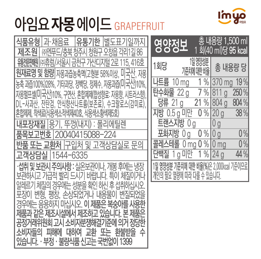톡톡튀는 과일알갱이들이 살아있는 리얼 자몽 에이드 베이스입니다.