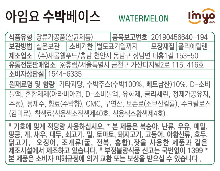 시원하고 진한 수박의 맛과 향이 느껴지는 베이스입니다.