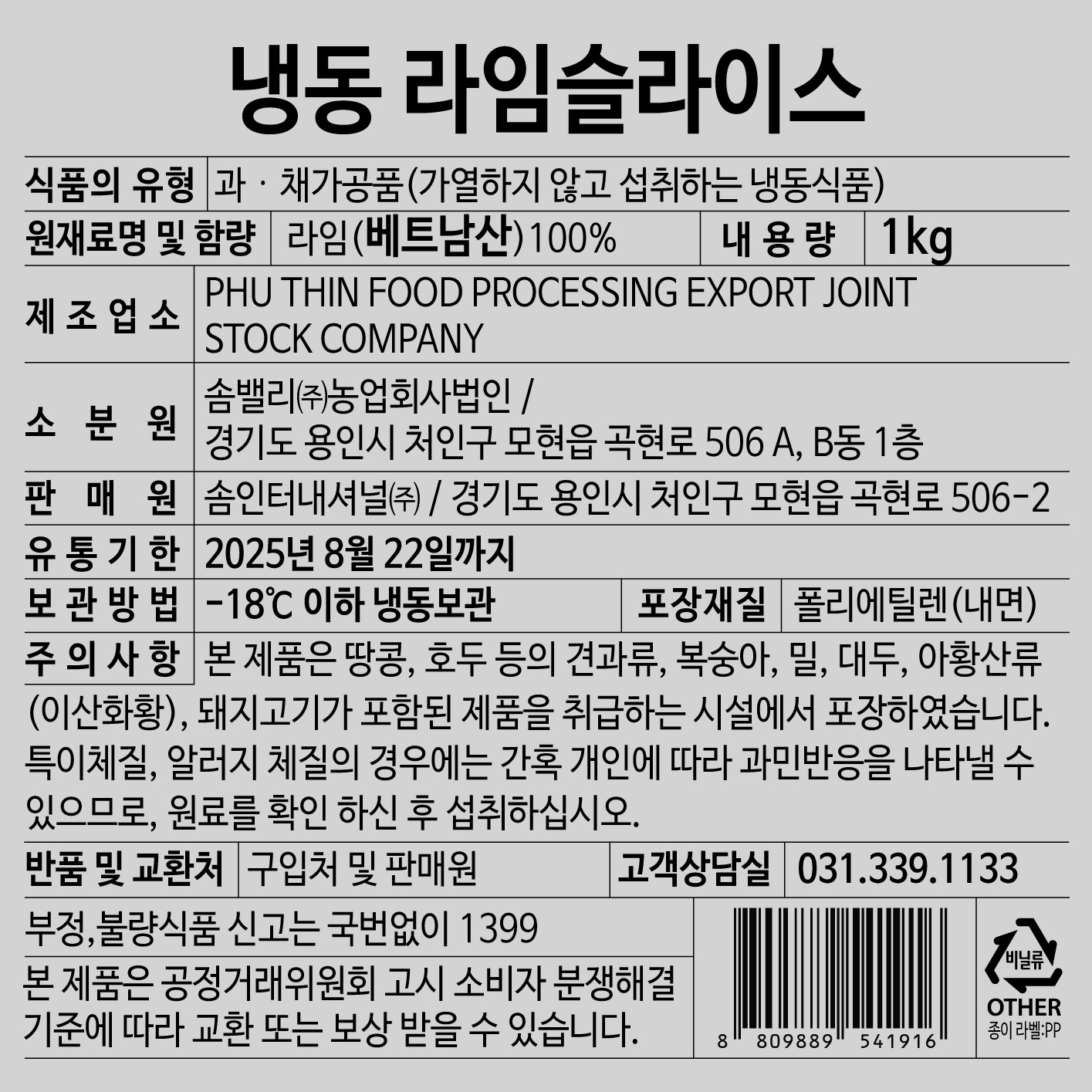 (솜)냉동라임슬라이스_1kg*10ea/box