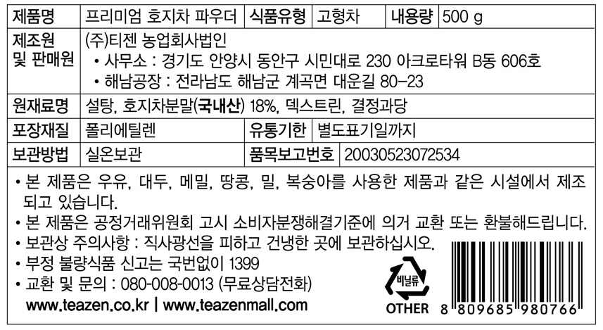 프리미엄호지차파우더(티젠)_500g*20ea/box