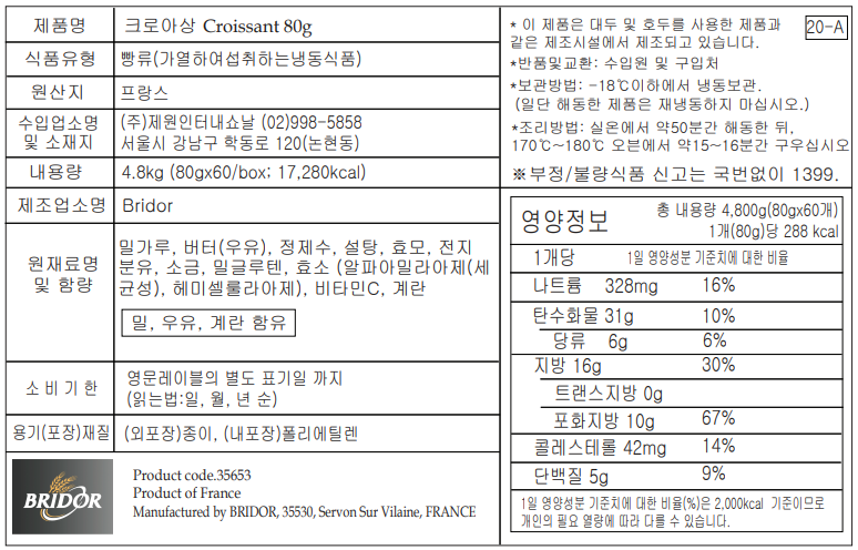 100% 프랑스산 발효버터를 사용한 2차 발효까지 완료된 결이 살아있는 크로아상 생지