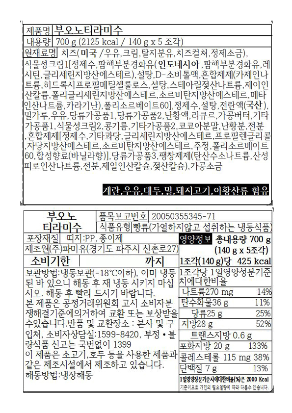 부오노티라미수(파미유)_(140g*5ea)*18pk/box