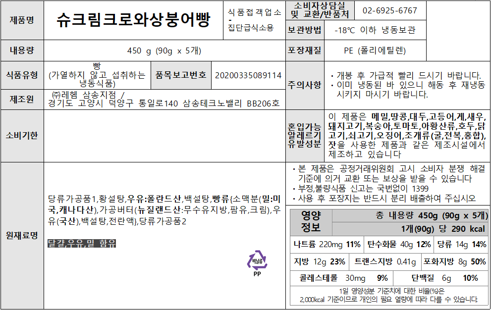 슈크림크로와상붕어빵_(90g*5ea)*2pk/box