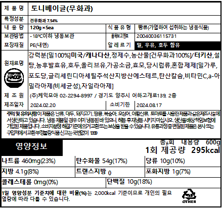 무화과베이글(토니베이글)_(120g*5ea)*4pk/box