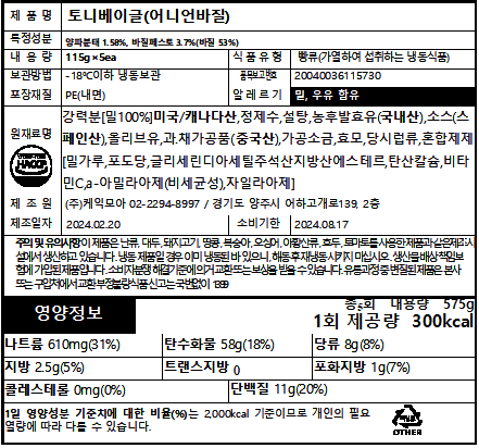 어니언바질베이글(토니베이글)_(115g*5ea)*4pk/box