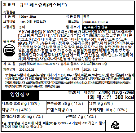 큐브페스츄리_커스터드_(115g*20ea)*3pk/box