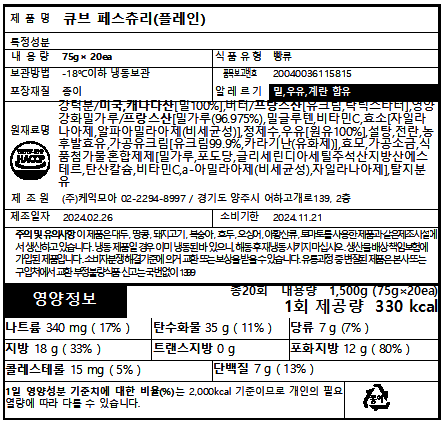 큐브페스츄리_플레인_(70g*20ea)*3pk/box
