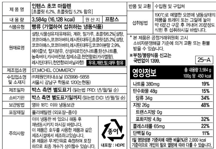 3가지 초콜릿(초콜릿 도우, 초콜릿 필링, 초콜릿 칩)이 함유되어 진한 초콜릿의 풍미를 그대로 느낄 수 있는 마들렌