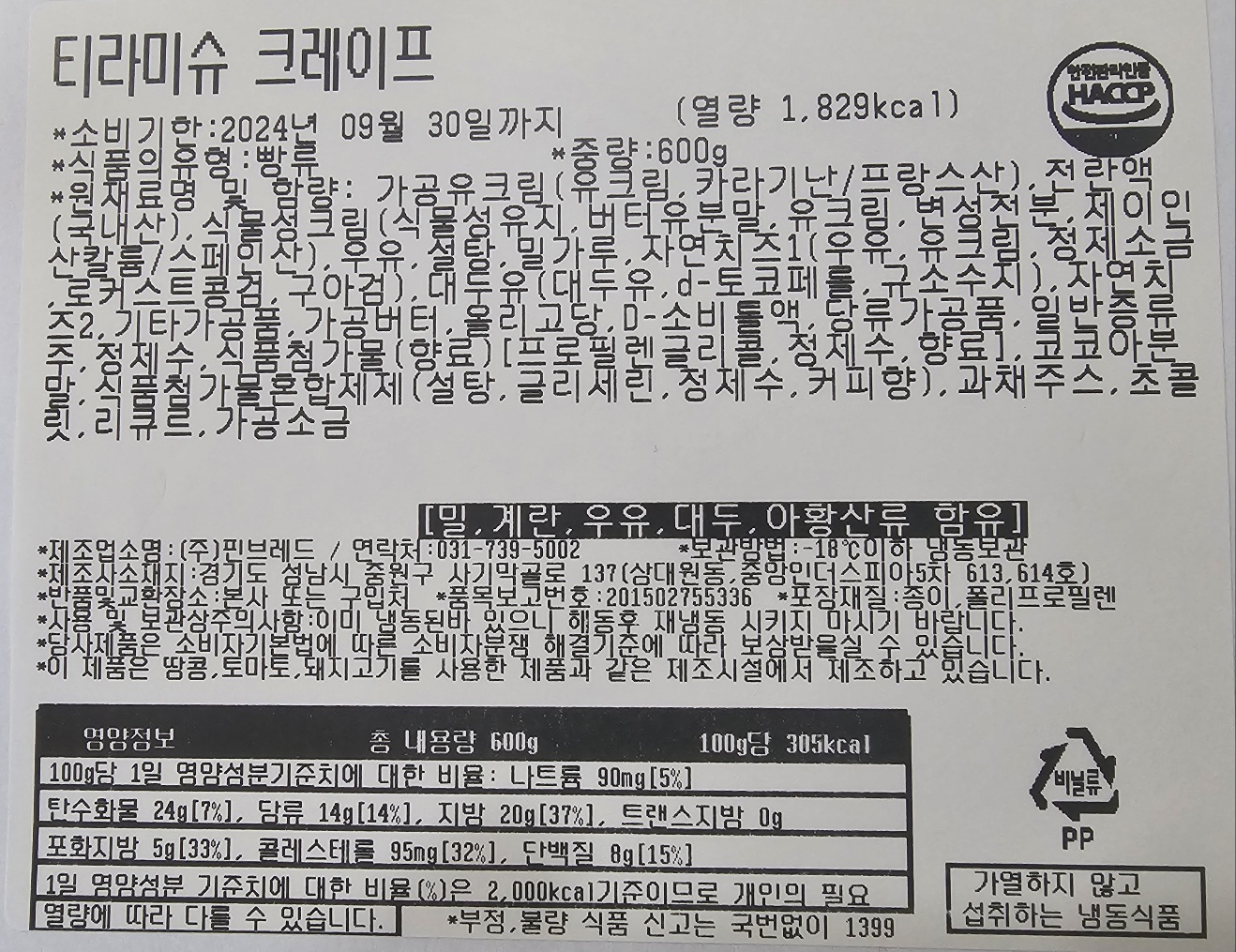 티라미슈크레이프(핀브레드)_(100g*6ea)*12pk/box