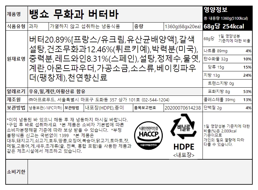 S(아프로푸드)뱅쇼_무화과_버터바_68g*20ea/box