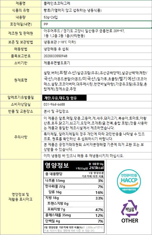 S(아우어푸드)플레인_초코_티그레_60g*24ea/box