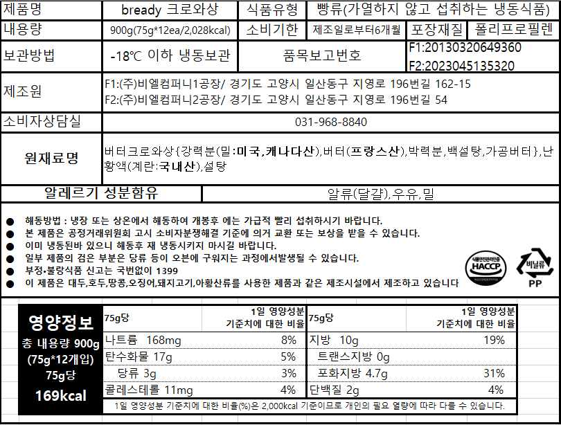 프랑스산 버터의 향이 물씬 풍기는 완제 크로아상