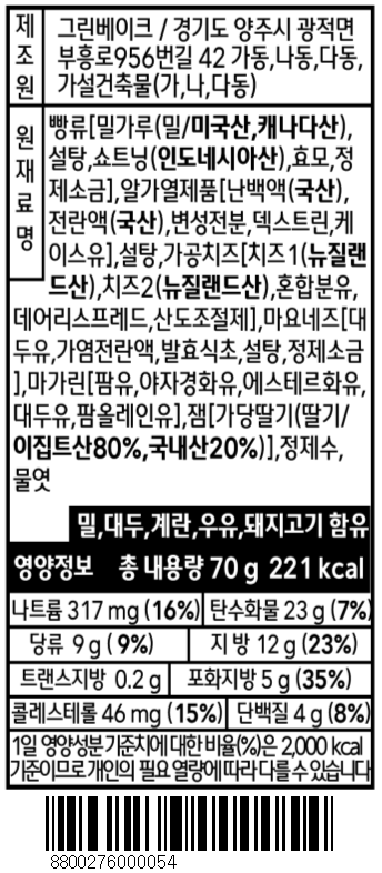 딸기샌드위치(그린베이크)_(70g*12ea)*5pk/box