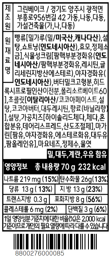 초코크림샌드위치(그린베이크)_(70g*12ea)*5pk/box