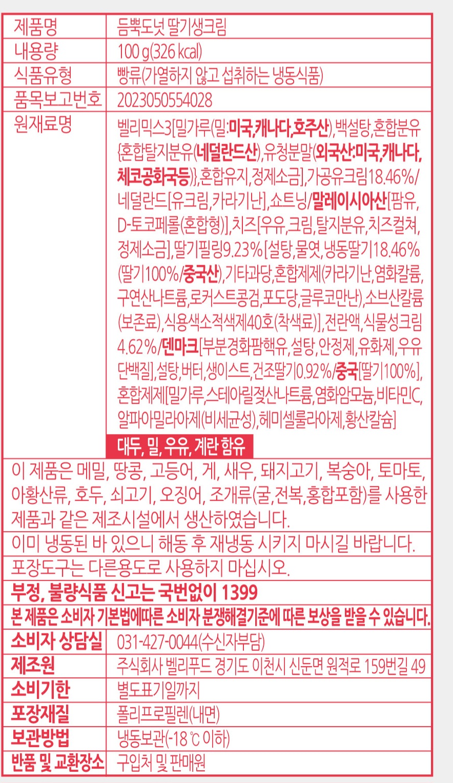 듬뿍도넛딸기생크림(베를리너)_100g*12ea/box