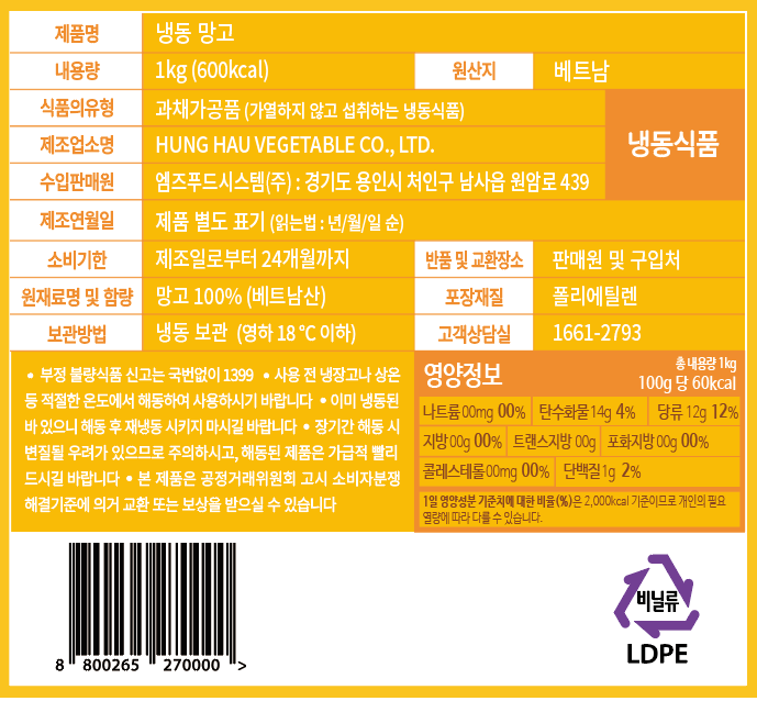 (엠즈FS/직수입)IQF냉동망고다이스(베트남산)_1kg*10ea/box