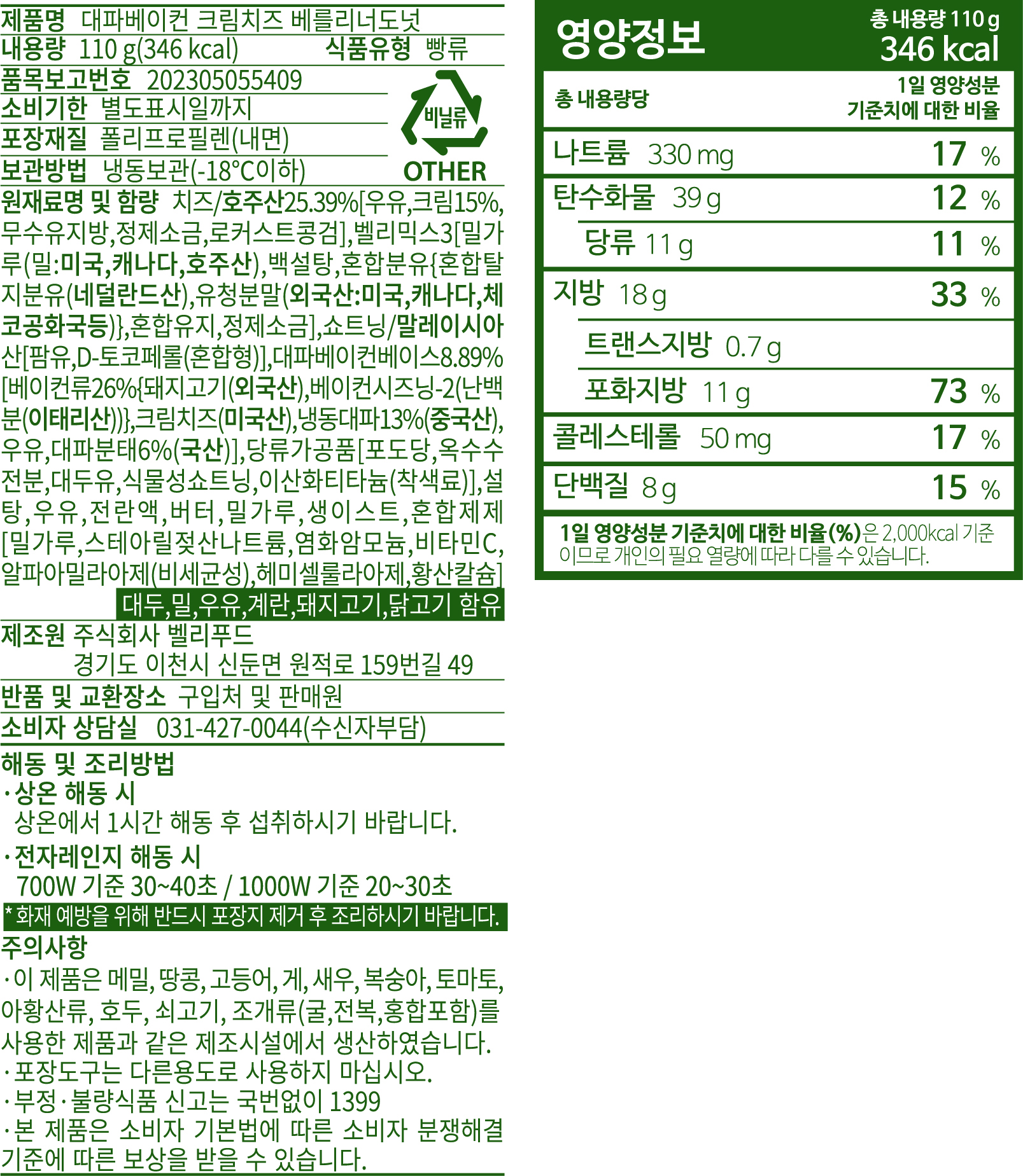 대파베이컨크림치즈도넛(베를리너)_110g*24ea/box