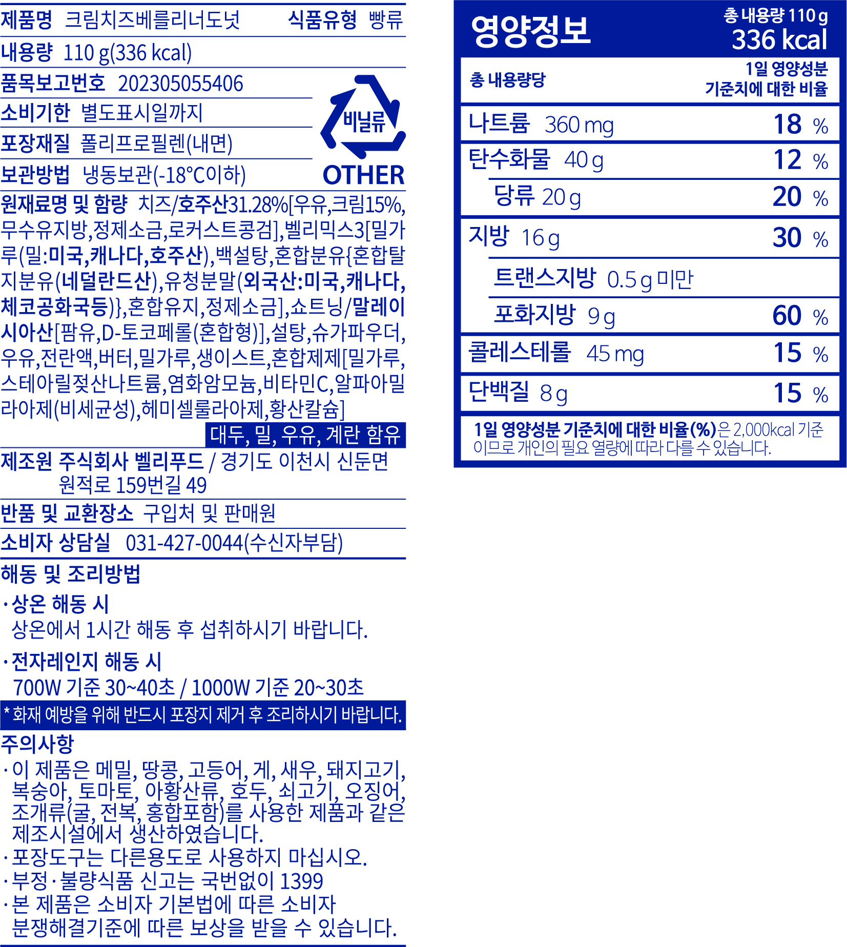 크고 부드러운 식감이 특징인 독일식 이스트 도넛에 크림치즈 크림이 듬뿍 들어간 베를리너 도넛