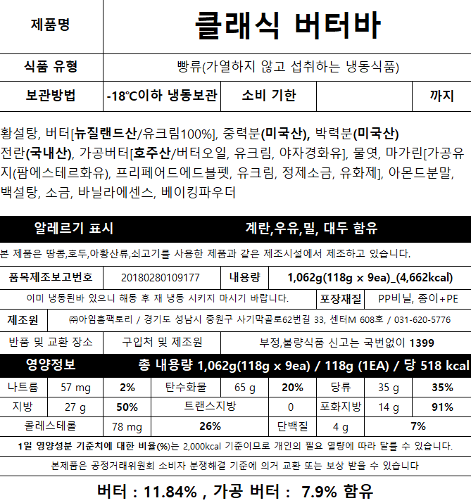 클래식버터바(아임홈팩토리)_(118g*9ea)*16pk/box