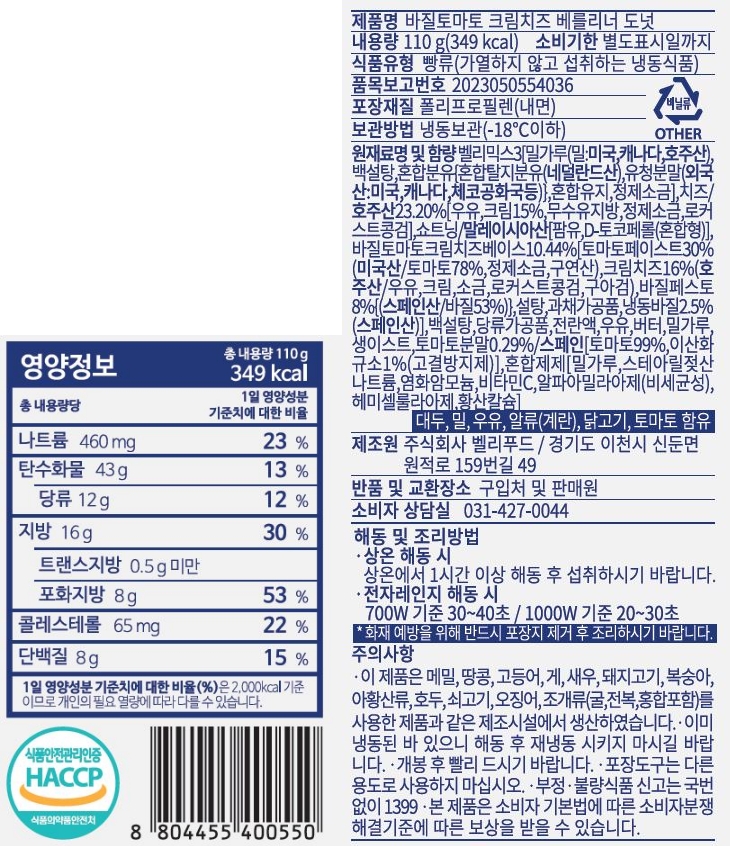 바질토마토크림치즈도넛(베를리너)_110g*24ea/box