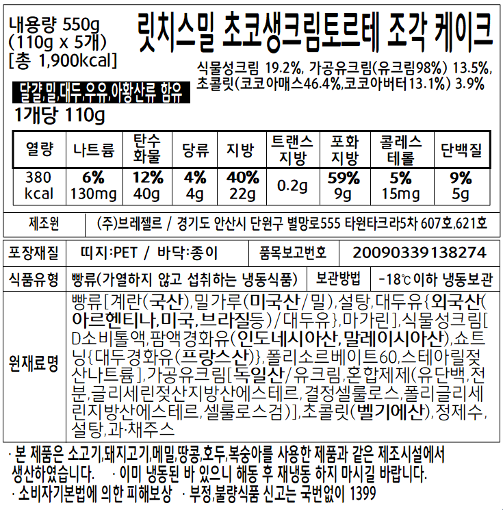 초코생크림토르테케이크_(110g*5ea)*18pk/box