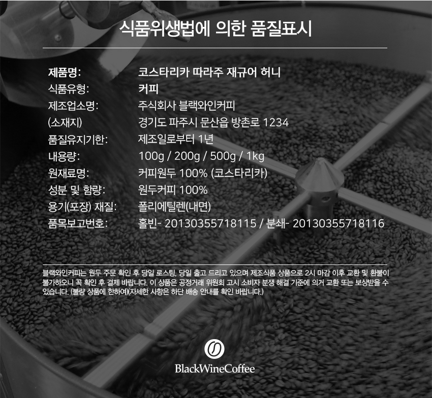 (오늘고원두_직송)블랙와인커피_코스타리카_따라주_재규어허니_1kg/pk