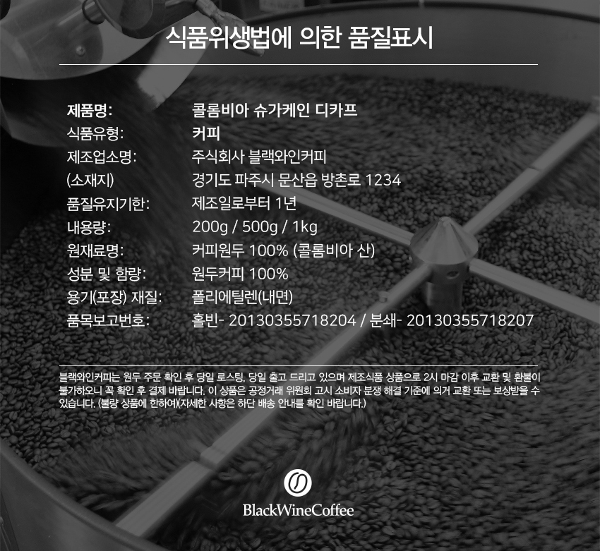 (오늘고원두_직송)블랙와인_콜롬비아_슈가케인디카페인_콜드브루_1kg/pk