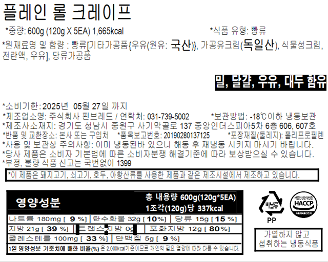 티라미슈크레이프(핀브레드)_(100g*6ea)*12pk/box
