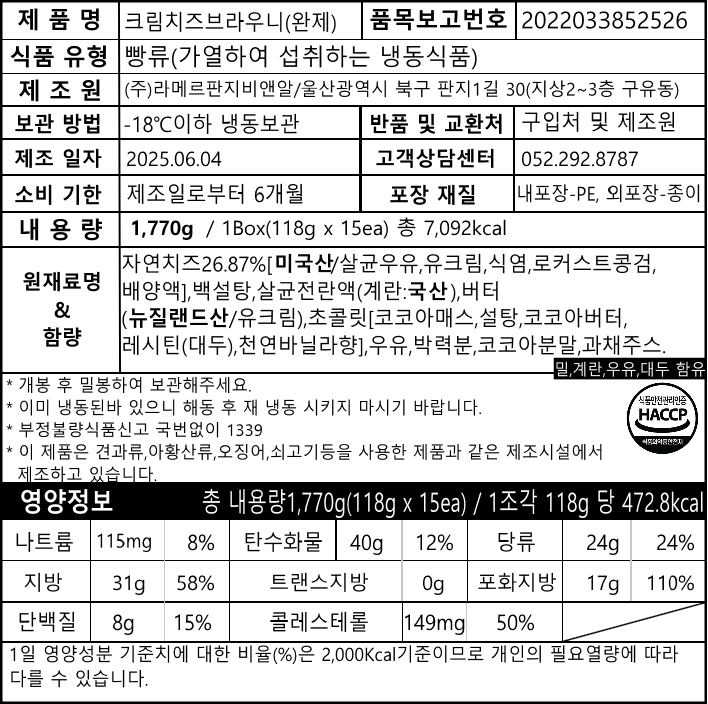 크림치즈브라우니_118g*15ea/box
