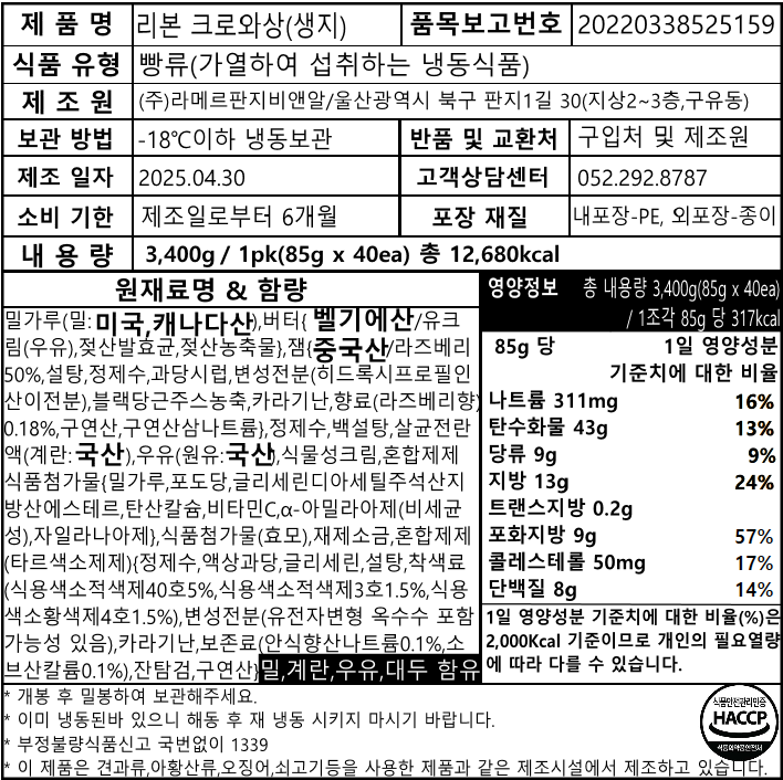 리본크로와상_생지_(85g*40ea)*2pk/box