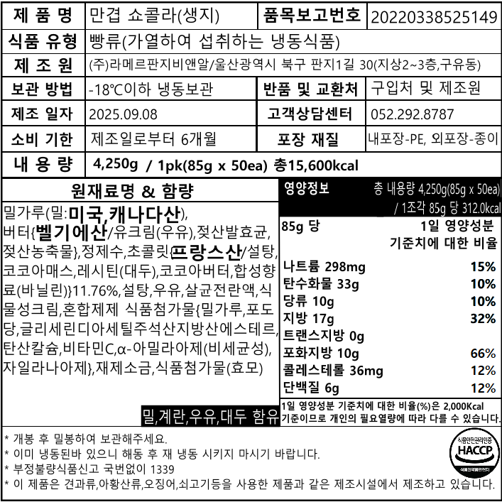 만겹쇼콜라_생지_(85g*50ea)*2pk/box